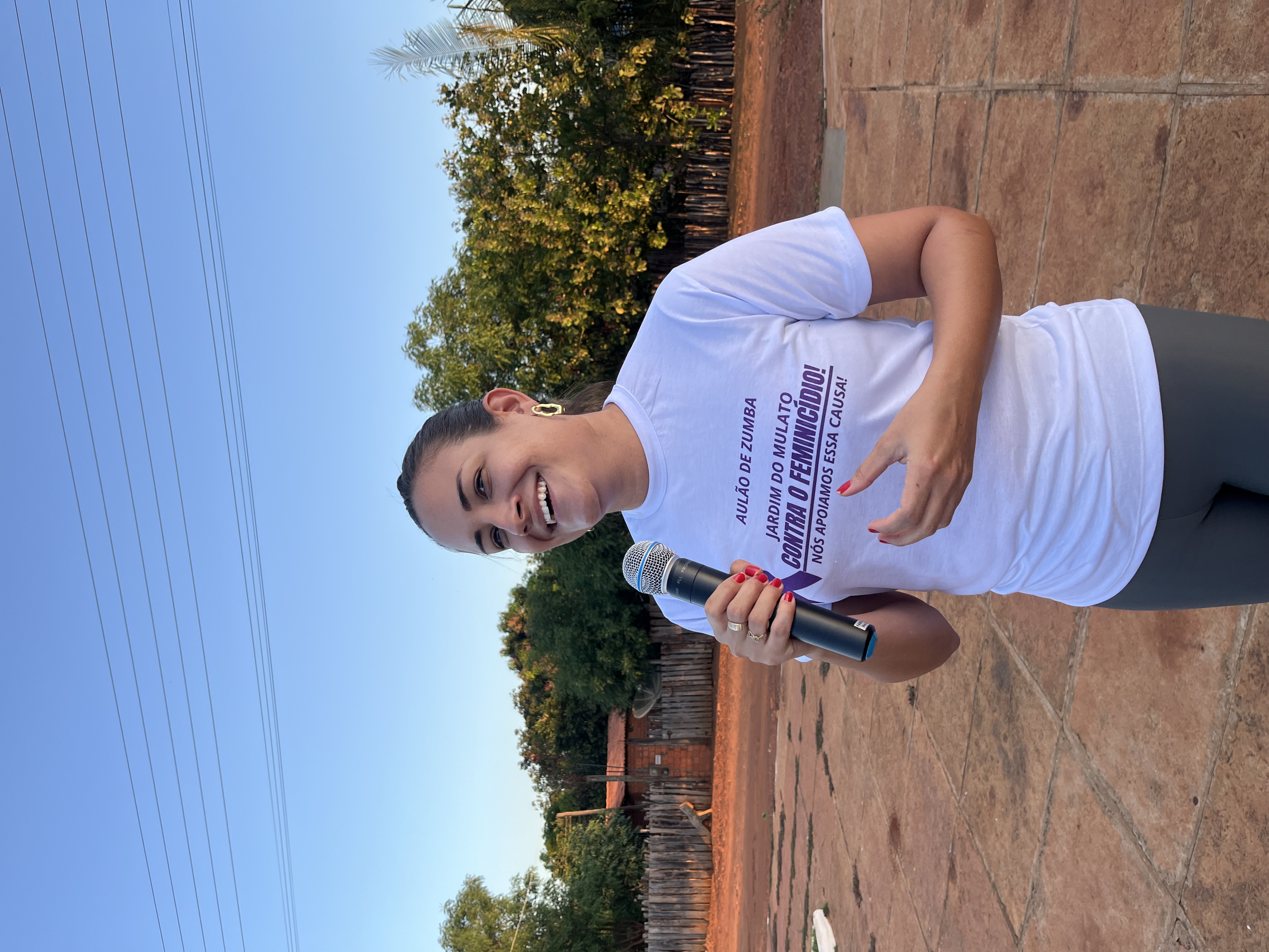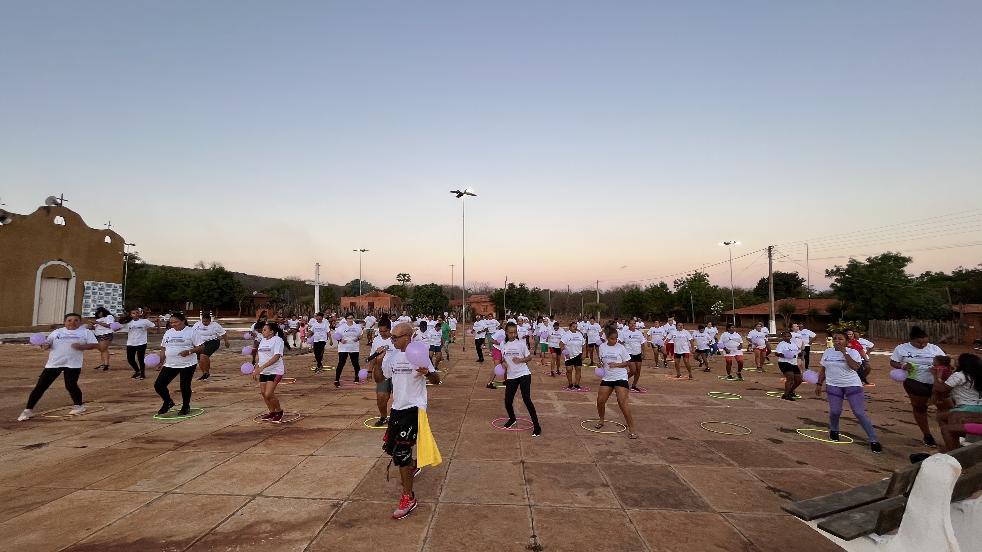 A primeira ação foi um Aulão de Zumba na comunidade Pitombeira, que proporcionou um momento de descontração, dança e informação pelo fim da violência contra a mulher. A atividade aconteceu na Praça Santo Antônio, sob o comando do instrutor Leudivan Barbosa e reuniu uma multidão na luta pela causa.